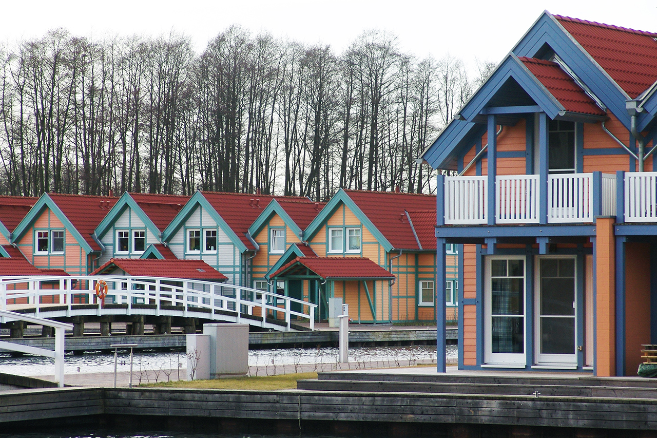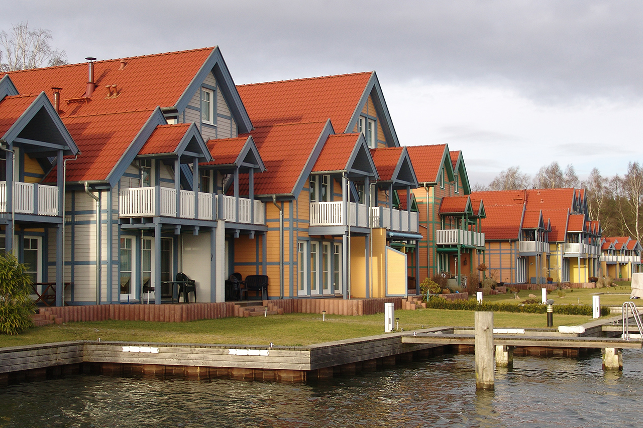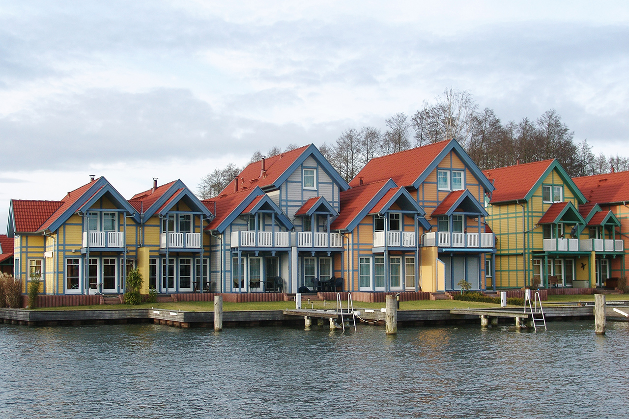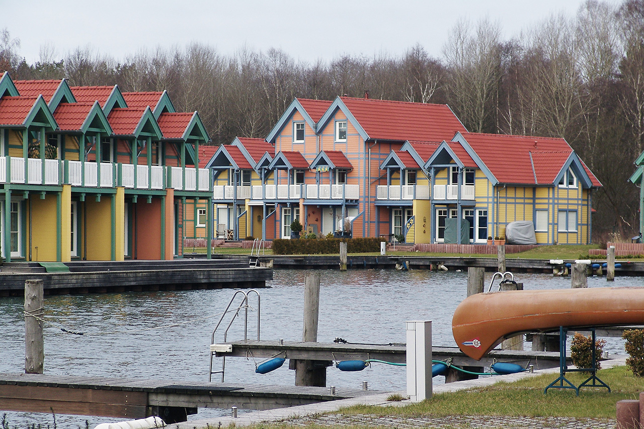 Die Ferienhausanlage liegt direkt am Großen Rheinsberger See und der größte Teil der Häuser verfügt über einen Bootsanleger direkt am Wasser.