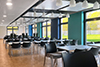 Diese sollten die CI-Farbtöne der im Gebäude ansässigen Unternehmensbereiche aufnehmen und Bezüge zu den zurückhaltenden Farben der Fassade herstellen.